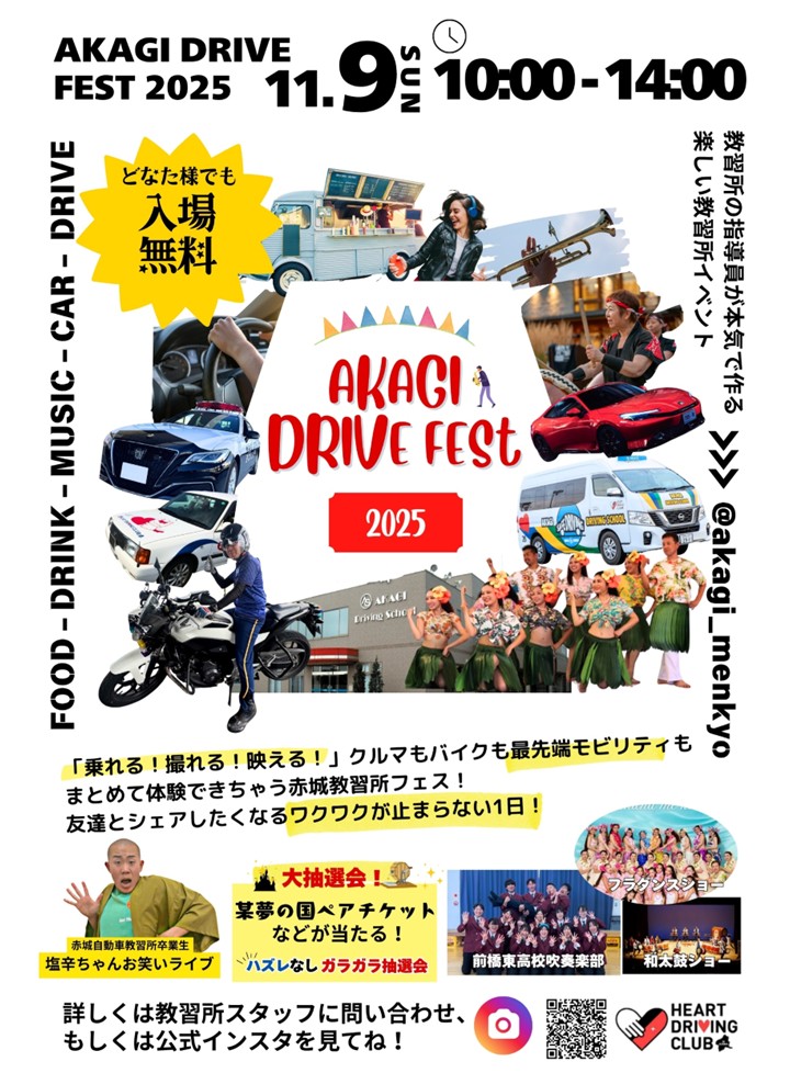 どなた様でも入場無料!! 11月9日(日)開催“AKAGI DRIVE FEST 2025”